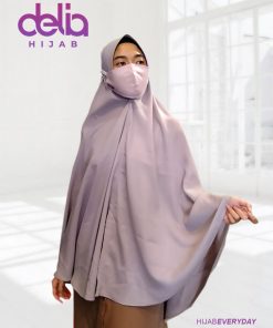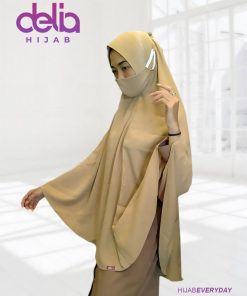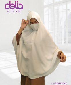 Kerudung khimar syar’i wanita muslim dari Delia Hijab. Khimar berukuran panjang menutupi dada dengan bahan Ladyzara yang adem dan nyaman. *Termasuk masker
