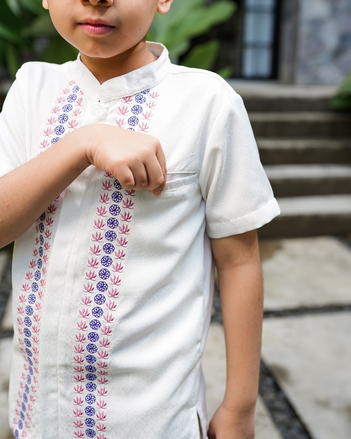 • Desain kerah: Shanghai (mandarin collar)